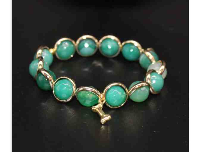 Brett Lauren Green Sardonyx Gold Plated Stretch Bracelet with Bone Charm (2 of 2)