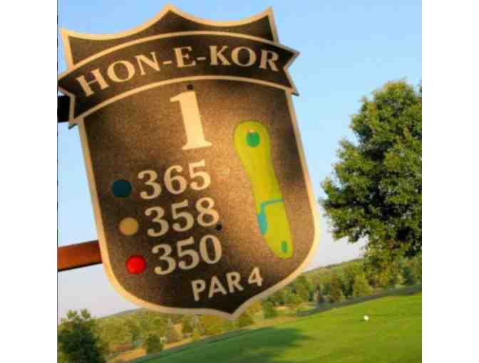 A gift certificate for two 18 holes of golf with a cart at Hon E Kor Golf Course located in Kewaskum.
