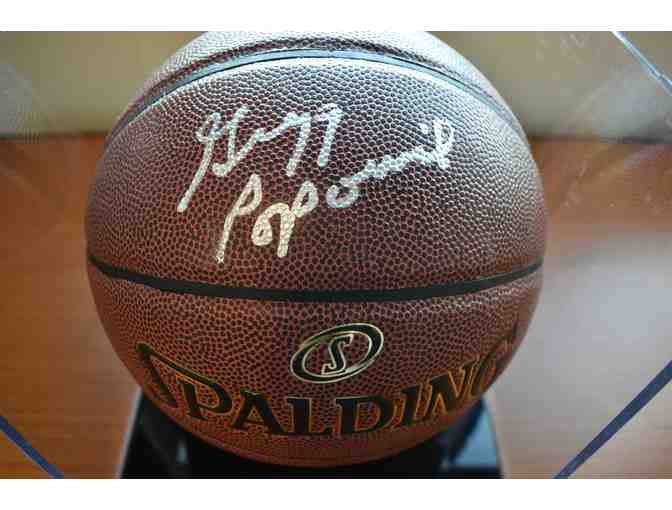 Greg Popovich autographed NBA basketball from the collection of a WNS parent. Includes display case.