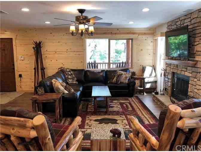 Enjoy three nights in a gorgeous, newly rebuilt four bedroom house with log style frontage. The cabin backs onto open forest land communally shared with quiet neighbors, and is located a few minutes drive from Big Bear Lake and Snow Summit Mountain where you can enjoy dozens of hiking and mountain biking trails, the quaint village shops, and local restaurants. The cabin sleeps 8-10 with two king beds, and four to six single beds and is fully furnished with all amenities, linens, and a fully stocked kitchen that includes a dishwasher and microwave. Enjoy the front and back decks and the open backyard (no rear fence), use the gas BBQ for meals, or relax inside the open main floor watching TV by the working wood fireplace. The garage is available for storage of any equipment you bring (e.g. bikes) and is where the washer and dryer are located. There is a central forced heating unit and wifi throughout the cabin. Parking is available for two cars only on the driveway. The house will be deep cleaned, sanitized and left vacant for 72 hours before your arrival (*see Covid 19 rules in the Special Notes section).