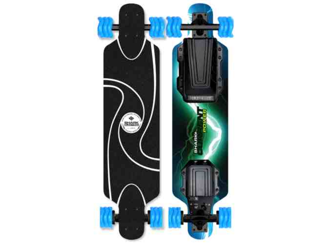 The Shark Wheel Electric Power model boasts an immense 30mph top speed (35mph in optimal conditions) combined with a 25-mile-long range, powered by its rechargeable battery. Charging time is about four hours. The power board does feature a little more torque than other e-boards of its style and is suitable for heavier riders with a thicker maple board deck. The board features four speed and break modes, and comes with the 95mm Shark wheels.