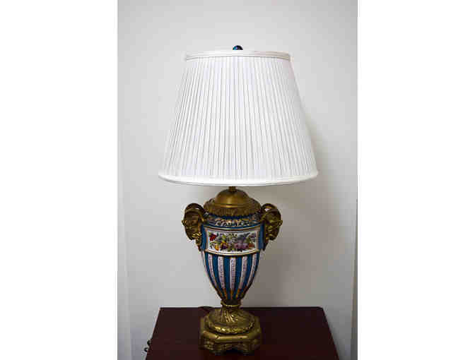 30" French Porcelain Lamp with Robin Egg Blue Background, c.1890