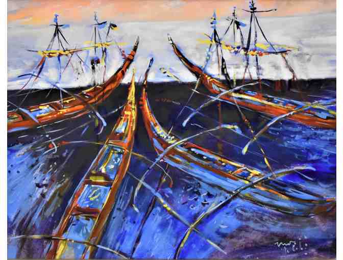 21"x25" Vietnamese Boat Painting