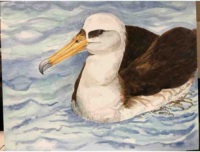 Albatross watercolor on wood panel, cradled, by artist Poo Wright-Pulliam from Sun Valley, Idaho. 11" x 14" x 1.5"