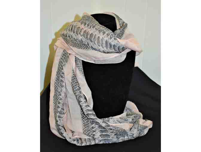Bid to win this stylish, one size fits all cream Modol python printed scarf!