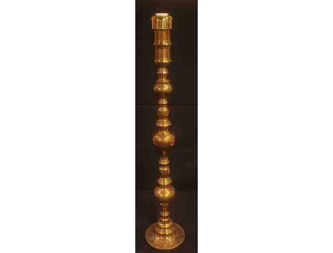 This brass candlestick holder will be a talking piece in your home. Hand carried home after the Vietnam war. This stands 3' 2" tall.