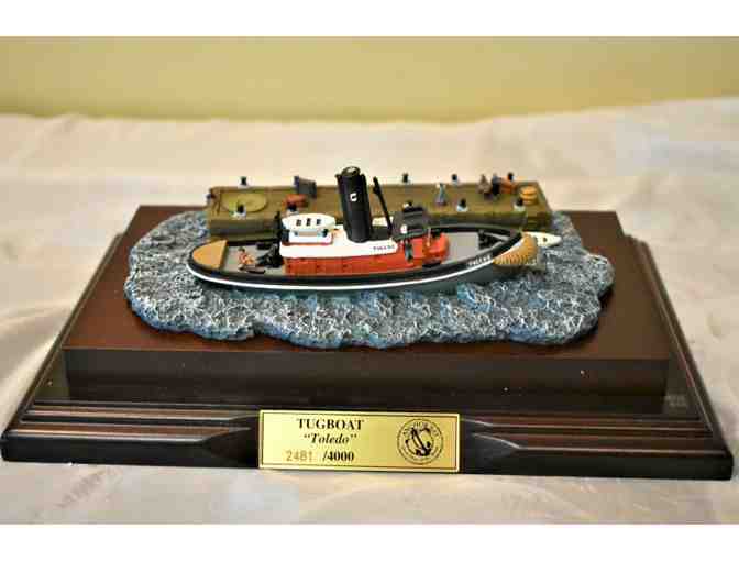 Bid to win a spectacular Tugboat Toledo Model Boat by Anchor Bay with display case! Model 2481/4000. Cold cast resin boat model comes with wood display base and glass and mirror case.Retired Numbered limited edition of 4000.