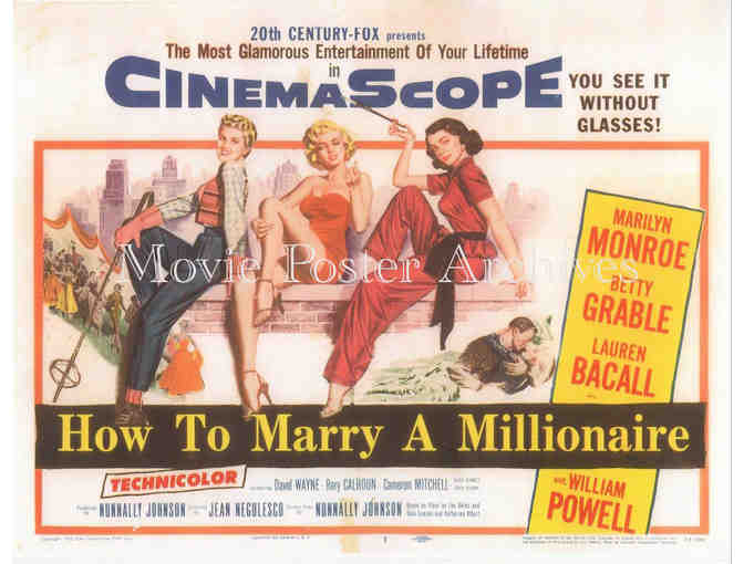 HOW TO MARRY A MILLIONAIRE, 1953 REPRO TITLE CARD, Marilyn Monroe, Betty Grable, Lauren Bacall