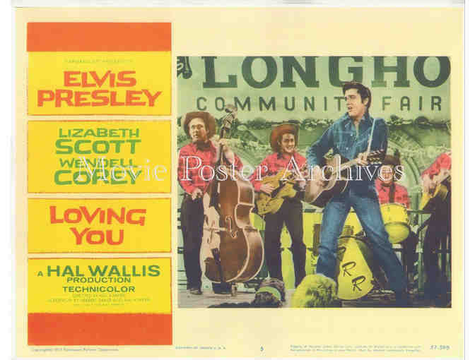 Loving You, the 1957 Hal Kanter rock and roll musical starring Elvis Presley, Lizabeth Scott, Wendell Corey, James Gleason, Ralph Dumke, Paul Smith, Kenneth Becker, Jana Lund and Dolores Hart.