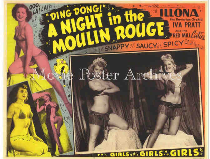 A Night in the Moulin Rouge, the 1951 W. Merle Connell burlesque exotic dancer sexploitation film starring Illona, Iva Pratt, Jennie Lee, Jack Little and George Beetlepuss Lewis. Also released as Ding Dong Girlies and Ding Dong.