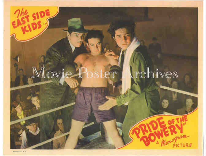 Pride of the Bowery, the 1941 Joseph H. Lewis teen comedy starring the East Side Kids Leo Gorcey, Bobby Jordan Sunshine Sammy Morrison, David Gorcey and Bobby Stone, Carleton Young, Mary Ainslee and Kenneth Harlan.