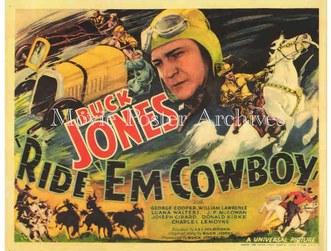 Ride em Cowboy, the 1936 Lesley Selander car racing western starring Buck Jones, Luana Walters, Donald Kirke, George Cooper, J. P. McGowan, Joseph W. Girard, Charles Le Moyne, W. E. Lawrence