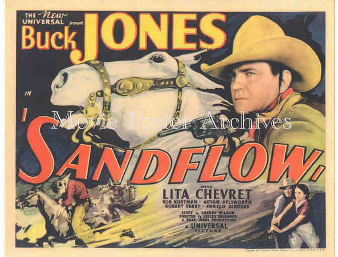 Sandflow, the 1937 Lesley Selander wester starring Buck Jones, Lita Chevret, Bob Kortman, Arthur Aylesworth, Bob Terry, Enrique de Rosas, Josef Swickard, Lee Phelps, Tom Chatterton and Arthur Van Slyke.