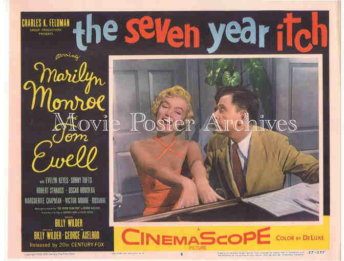 The Seven Year Itch, the classic 1955 Billy Wilder middle age crisis comedy starring Marilyn Monroe, Tom Ewell, Evelyn Keyes, Sonny Tufts, Robert Strauss, Marguerite Chapman, Victor Moore and Carolyn Jones.