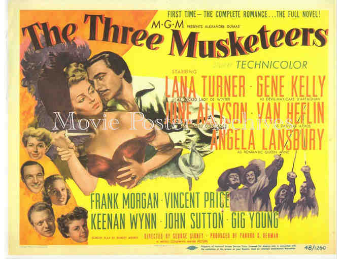 The Three Musketeers, the 1948 George Sidney swashbuckling adventure starring Lana Turner, Gene Kelly, June Allyson, Van Heflin, Angela Lansbury, Frank Morgan, Vincent Price, Keenan Wynn, Gig Young and Reginald Owen