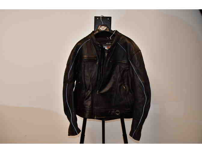 This 2004 Harley Davidson black leather jacket is a great collectible with many zipper pockets and the Harley Davdison logo embossed on the back. The jacket is in a size 3X and can be yours with the right bid.