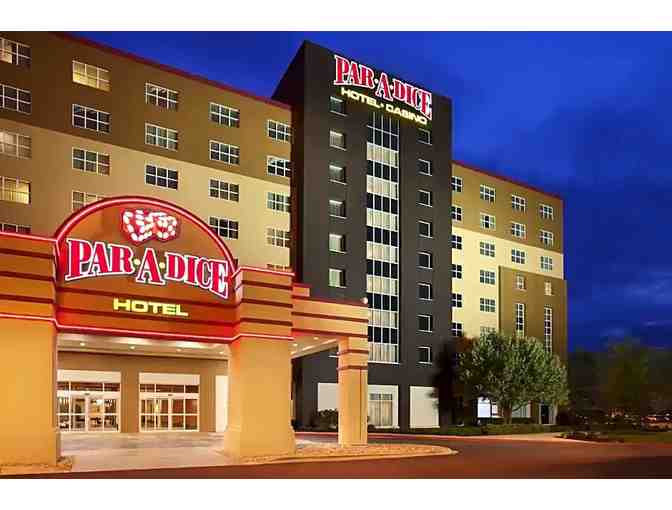 Enjoy an overnight stay at the Paradice Hotel in East Peoria with this gift certificate. You will also receive a complimentary menu item from the Munchies section of the Tin Lizard Menu.