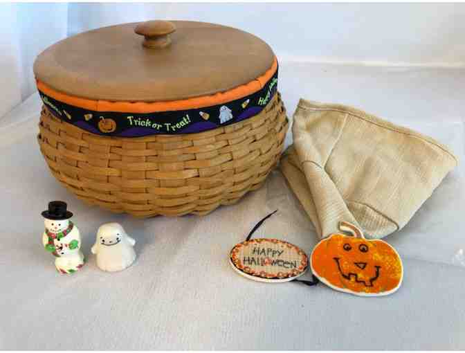 2004 Longaberger Happy Halloween Hostess Basket Combo includes basket, liners,knobs, lid and tie-ons.