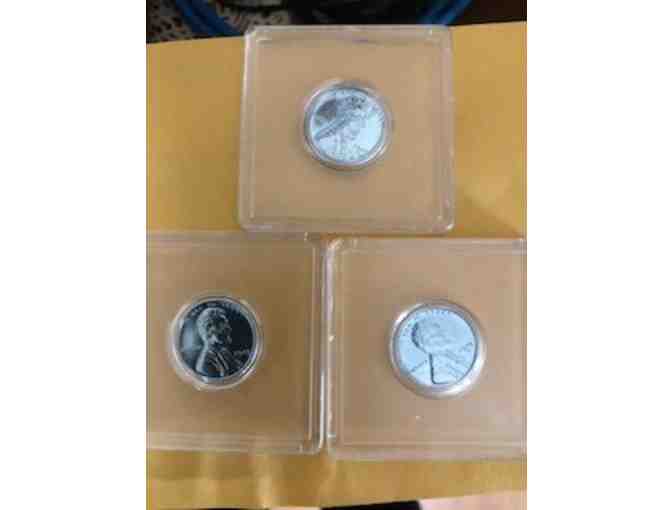 Set of processed 1943 PDS (Philadelphia, Denver, San Francisco mints that produced these coins). Copper was taken from the Mint in 1943 and used to fight WWII by providing material for shell casings and other supplies for the troops. They are commonly called 'steel pennies' and they are the only America coin that a magnet will pick up.