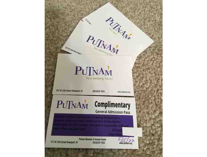 These are FOUR FREE GENERAL ADMISSION to the Putnam Museum in Davenport, Iowa.