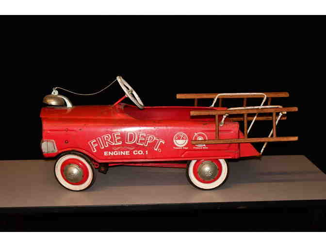 The Peddle car is 19" high at the steering wheel, 39.5 inches long with out the ladders and 44.5 inches long with the ladders