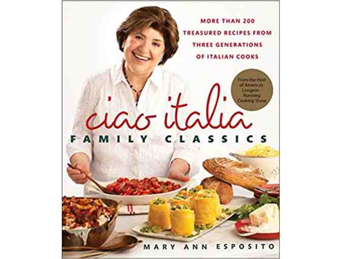 Bid on Mary Ann Esposito's most recent cookbook, Ciao Italia~Family Classics containing more than 200 treasured recipes from three generations of Italian cooks. A personalized, autographed copy of this will be a welcome addition to any foodie's collection, or to give as a gift!