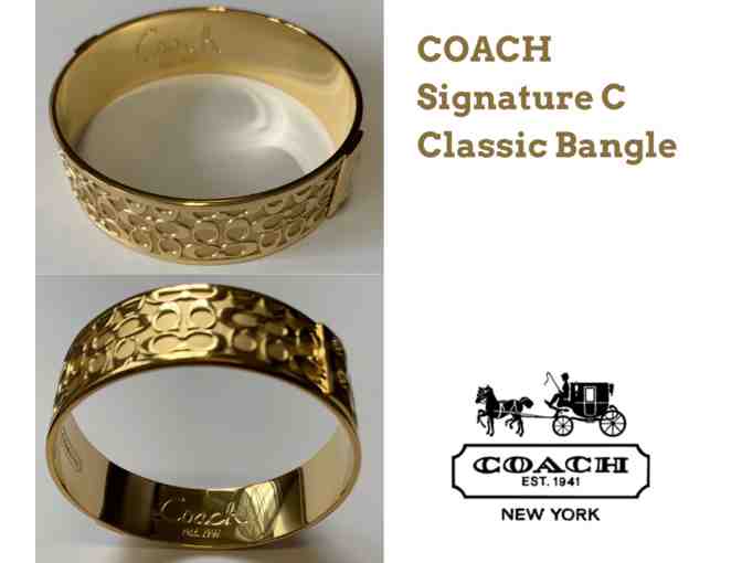 Add a touch of classic elegance to your jewelry collection with this COACH Signature C Classic Bangle. COACH is a favorite American luxury brand. Generously donated by Metal Dynamics.
