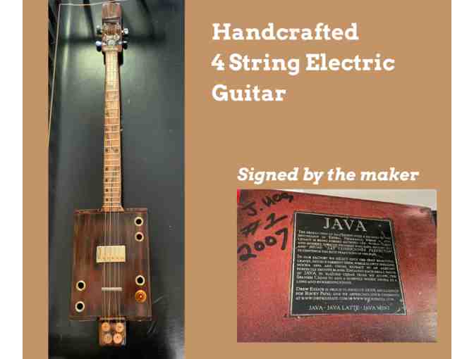 Make music with this 4 String Electric Guitar, handcrafed by maker Jay Hogg, whose love of the blues and making guitars is evident is the quality of his work. Autographed on the back. Whether you're a novice guitar player or looking to add to your instrument collection, this guitar will suit you nicely.