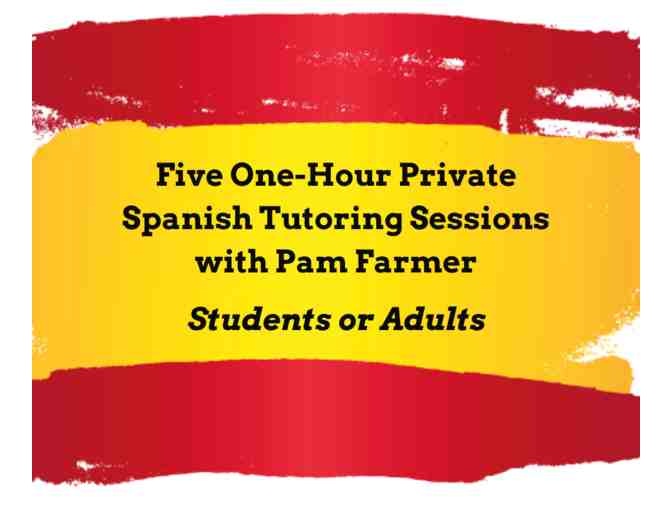 Looking for extra help in Spanish class? Curious to learn a new language and have fun while doing it? Get five one-hour private Spanish tutoring sessions with Pam Farmer, whose love of the language and teaching will make the lessons a wonderful experience.