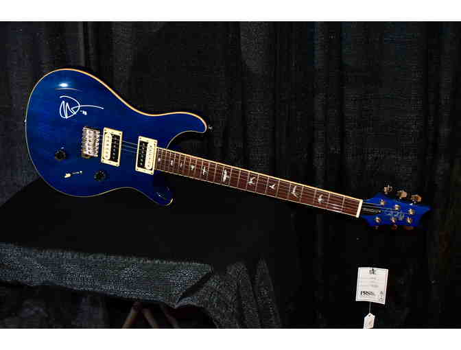 This autographed electric guitar was signed by a grammy nominated and platinum selling artist Hozier in 2018.  Comes with a maroon case bag. The guitar is a Paul Reed Smith standard 6-string electric guitar was crafted in a deep cobalt blue with dove inlays.  The guitar measures 14 by 39 inches and would make a fine addition to your collection. Paul Reed Smith is a master luthier and the founder and owner of PRS Guitars, a high-end guitar maker.