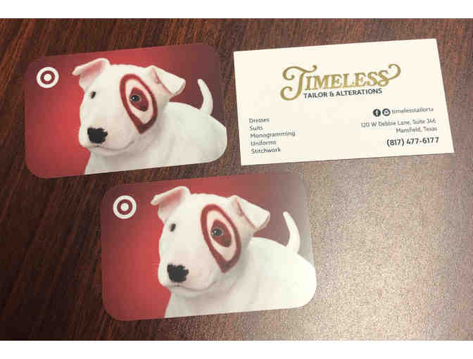 Enjoy a shopping trip to Target with two $25 gift cards. Have any needed alterations made with a $25 gift certificate to Timeless Tailor and Alterations.