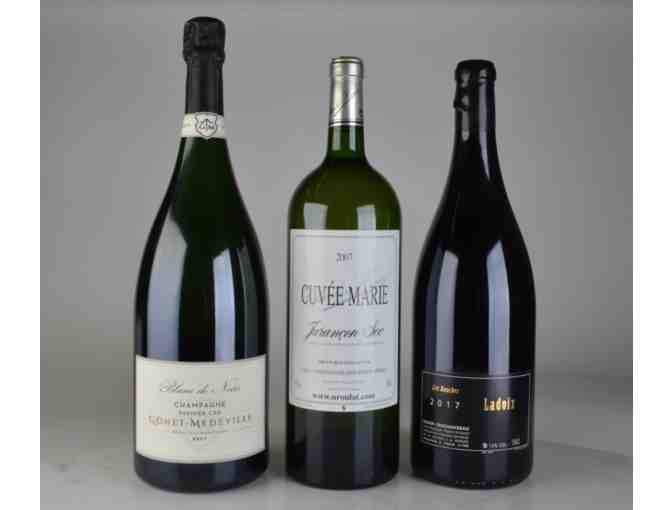 Please enjoy a beautiful line up of three large-format magnum bottles from France: a Champagne, a white wine and a red wine. Perfect for your first post-pandemic dinner party!!