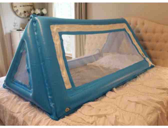 The Safe Place Travel Bed is an inflatable, affordable & portable sleeping solution designed by a special needs parent that is easily strapped to a mattress providing children a sense of feeling enclosed and safe. Made of durable materials that can withstand kicks, bites, and movement without a child feeling stressed or trapped. Safe Place Bedding is ideal for kids over 3 years old who have outgrown other solutions like the Pack & Play.