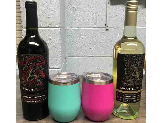 2 Wine Tumblers, Apothic Cab Cabernet Sauvignon, and Apothic White Winemakers Blend