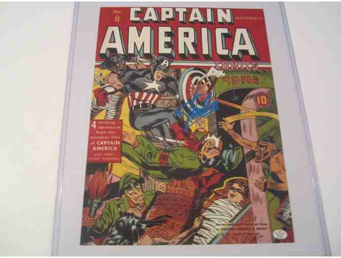 Stan Lee Captain America Autographed Large Photo, measures 11" x 17". Comes with certificate of authenticity.