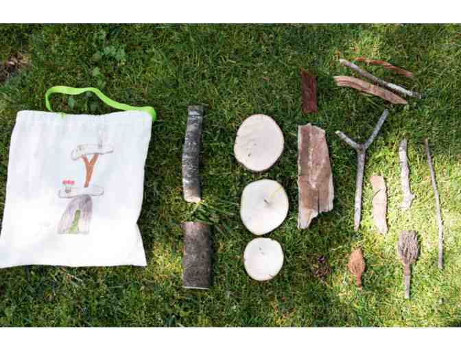 Choose your own adventure with our magical fairy house starter kit! Each kit comes with three wood slices, two connectors, and an assortment of nature trinkets all enclosed in a one of a kind decorative bag sewn by first grader grandmother, Ardath.