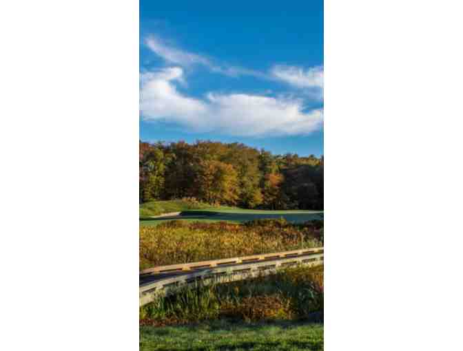 A round of golf at TPC Boston in Norton, Massachusetts for 4 people. Originally designed by Arnold Palmer and built in 2003, the course was re-designed by Gil Hanse and PGA Tour player Brad Faxon.