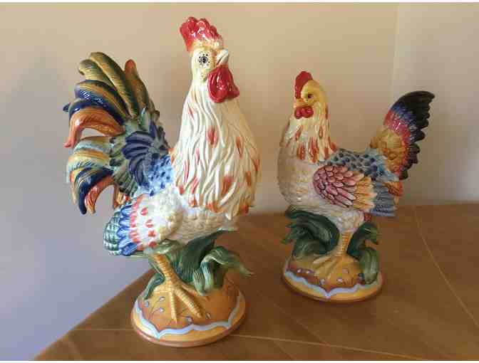 Fitz and Floyd Rooster and Hen large ceramic vintage collectibles!