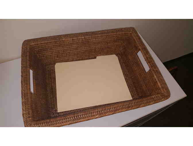 Approximate Dimensions: 14" bottom base, 9 1/2" bottom base width, or 19" handle to handle