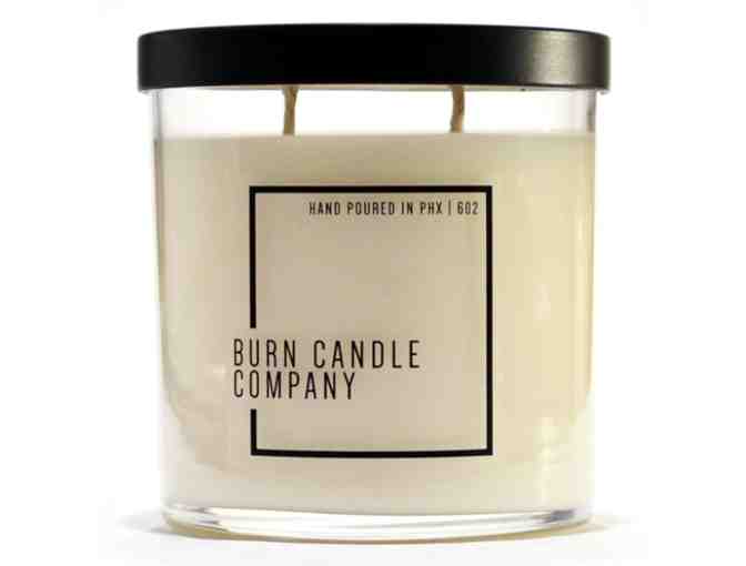 A gift basket from Burnt Candle Company containing both a 10oz and 8oz lavender-vanilla candle and a 7oz lavender-vanilla reed diffuser.