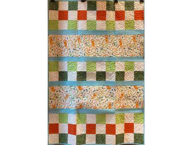 Beautifully hand-quilted blanket (38" x 55") by Jean Bingham.  Fits crib or toddler bed.