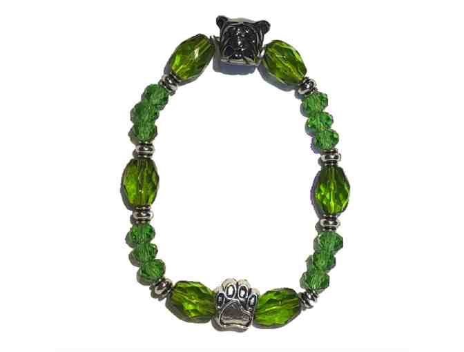 Handcrafted BASIS Scottsdale green stretch bracelet with Bulldog accents by 8th grader Evangeline C.
