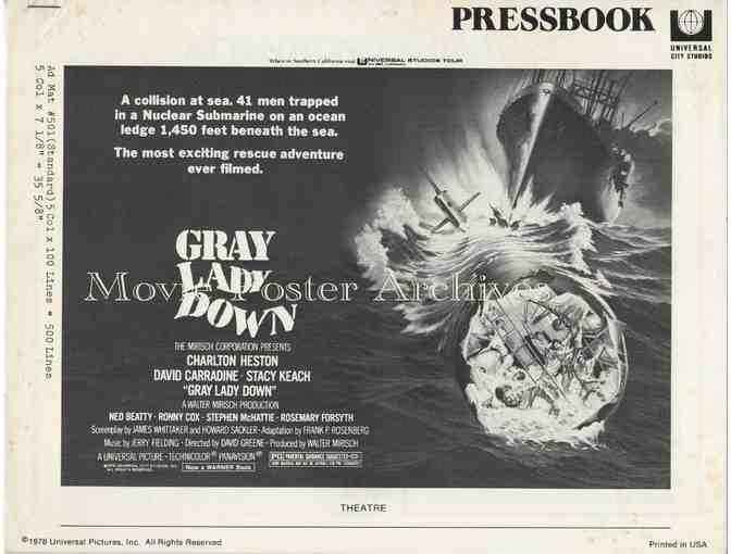 GRAY LADY DOWN, 1978 U.S. PRESSBOOK, Charlton Heston, David Carradine, Christopher Reeve,