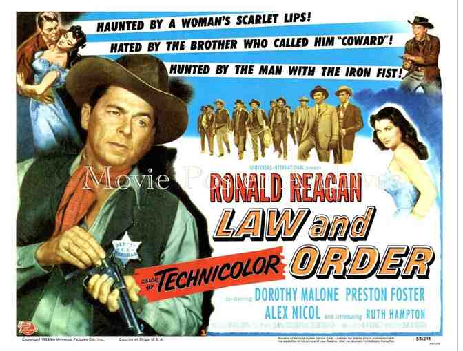 Law and Order, the 1953 Nathan Juran western starring Ronald Reagan, Dorothy Malone, Preston Foster, Russell Johnson, Alex Nicol and Ruth Hampton.