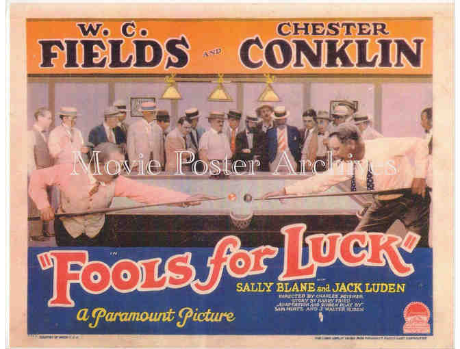 FOOLS FOR LUCK, 1928, REPRO Lobby Card, Title card, W. C. Fields, Chester Conklin, Mary Alden