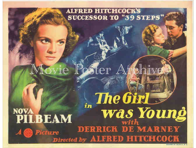 Young and Innocent, the 1937 Alfred Hitchcock British crime drama released in the U.S. in 1938 as The Girl Was Young starring Nova Pilbeam, Derrick De Marney, Percy Marmont, Edward Rigby, Mary Clare, John Longden, George Curzon, Basil Radford, Pamela Carme and George Merritt.