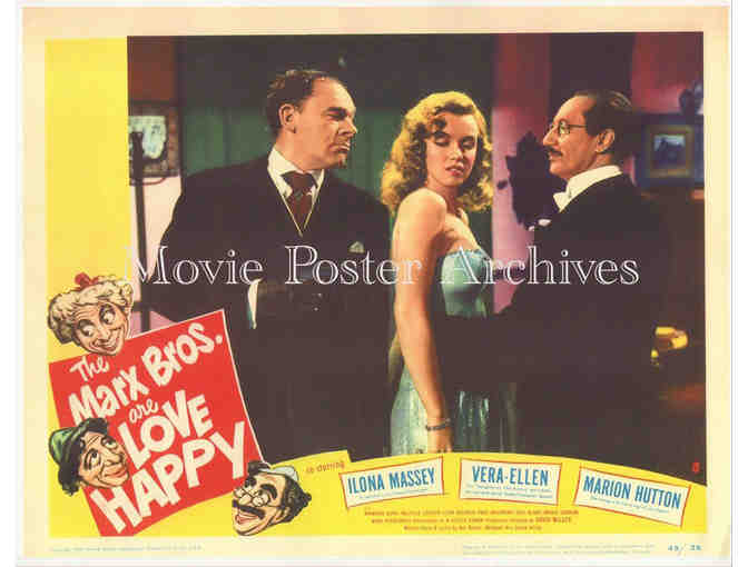 Love Happy, the 1949 David Miller musical screwball comedy starring Groucho Marx, Harpo Marx, Chico Marx, Ilona Massey, Raymond Burr, Marilyn Monroe, Bruce Gordon and Melville Cooper.