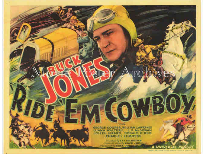Ride em Cowboy, the 1936 Lesley Selander car racing western starring Buck Jones, Luana Walters, Donald Kirke, George Cooper, J. P. McGowan, Joseph W. Girard, Charles Le Moyne and Silver.