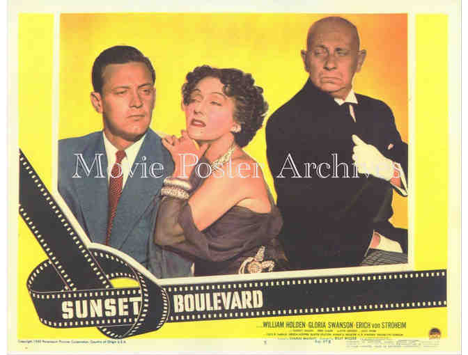 Sunset Boulevard, the classic 1950 Billy Wilder filmmaking crime noir starring William Holden, Gloria Swanson, Erich von Stroheim, Nancy Olson, Fred Clark, Lloyd Gough, Jack Webb and Franklyn Farnum.