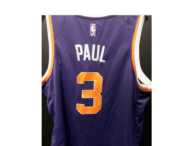 Bid now to win this Phoenix Suns swingman purple jersey autographed by Suns All-Star guard Chris Paul. The jersey is a size XL